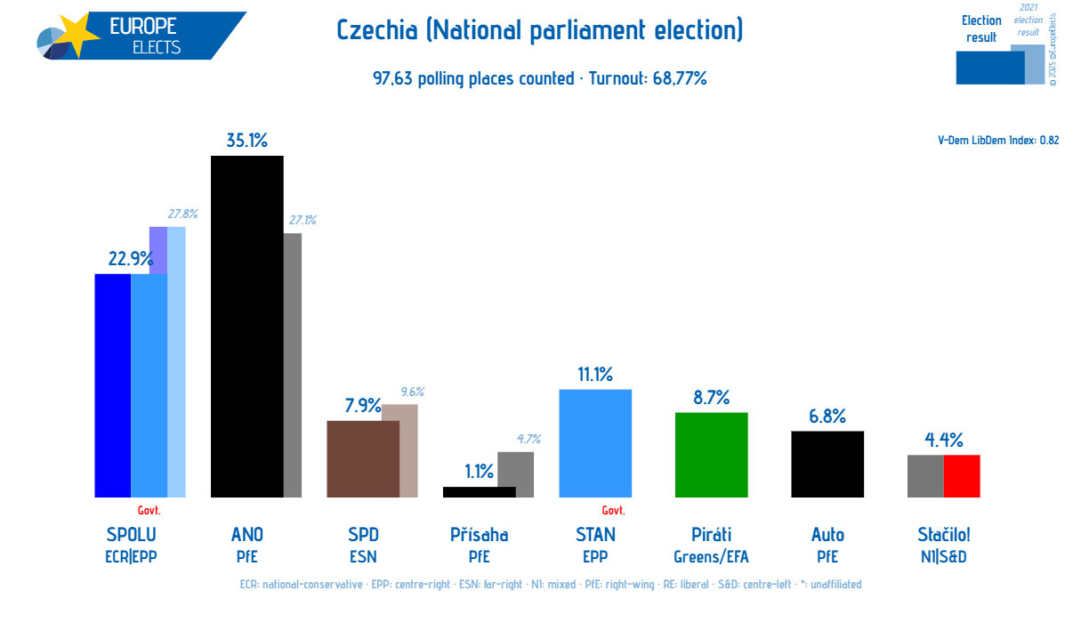 W Czechach odbyły się w ten weekend wybory parlamentarne i znamy już ich wynik – wygrała, tak jak przewidywano, partia byłego premiera Andreja Babiša, ale wyniki potencjalnych koalicjantów nie są tak dobre jak się spodziewano więc może skończyć się tak, że Babiš będzie rządził z rządem mniejszościowym.