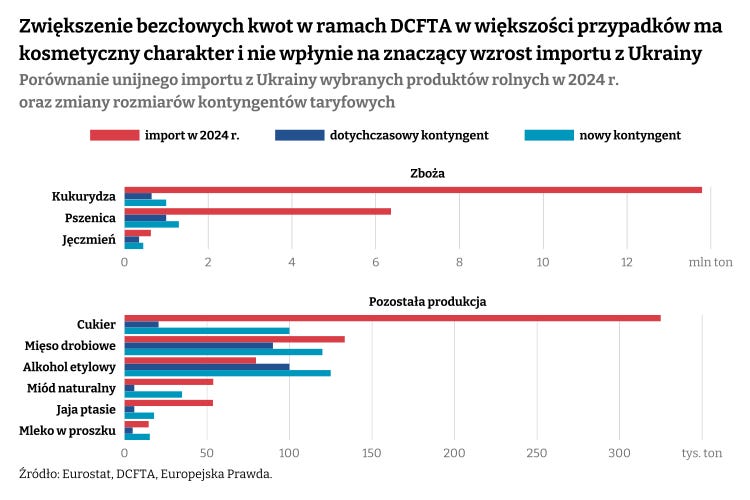„13 października Rada UE zdecydowała o redukcji lub całkowitym zniesieniu ceł na szereg produktów rolno-spożywczych importowanych z Ukrainy, m.in. na nabiał, owoce i warzywa oraz mięsa i jego przetwory.” [Ośrodek Studiów Wschodnich]